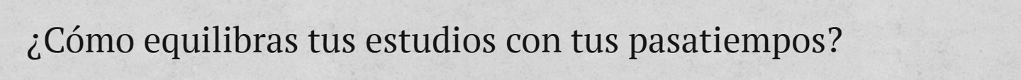 M.T.: Me organizo con horarios. Primero cumplo con mis responsabilidades (tareas, estudiar) y luego disfruto mis pasatiempos sin culpa. También dejo tiempo libre para descansar, porque eso ayuda a rendir mejor en los estudios.