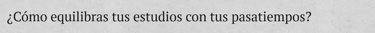M.M.: Los equilibrio de una forma no tan bueno ya que algunas veces estudio hasta el mero día de la prueba o examen pero mayormente siempre estudio máximo una hora para poder tener tiempo libre para mis pasatiempos.